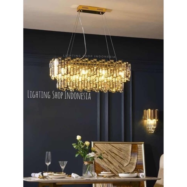 Lampu gantung kristal panjang gold modern meja makan Sumber : shopee.co.id